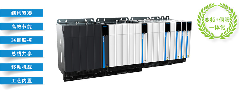| MD810系列高性能多机传动驱动器 | MD810 标准型多机传动变频器是汇川新一代低压多点传动系统,突破了国外多点传动的技术堡垒和垄断格局,开创了多传变频产品在中国OEM 行业应用的先河。汇川MD810 与AM610 / H3U 等PLC 高速总线组网,实现一网调试,一网驱控,兼容异步及同步伺服电机,搭载23 bit 绝对值编码器,打造更强变频驱动。
