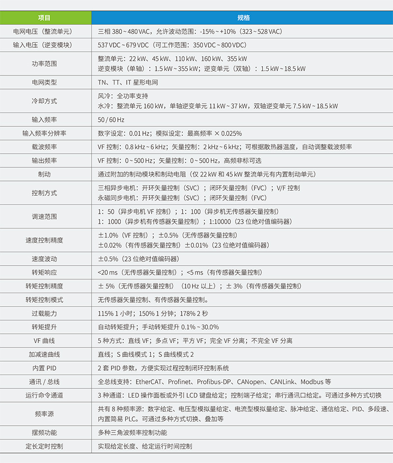 1、MD810 功率范围:整流单元 22 ~ 355 kW,逆变单元1.5 ~ 355 kW,具备单双轴两个版本,双轴二合一性价比更高