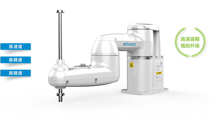 | IR-C8系列高速SCARA机器人 | IR-C8 系列是汇川技术推出的速度最快的 SCARA 机器人,性能比肩欧系最高品牌。节拍时 间比上代产品缩短了 38%,仅为 0.26s !可助您的高精度加工产线大幅度提升效率,以光伏组件产线为例,IR-C8 高速机器人将电池的串焊效率从 1600p/h 提升至 3600p/h !