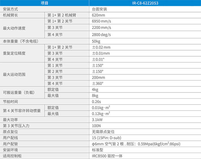 当前位置: 首页 > 产品展示 > IR-C8系列高速SCARA机器人